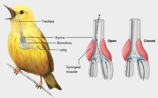 پرندگان صداهای خود را از طریق اندامی به نام سیرینکس (Syrinx) تولید میکنند.